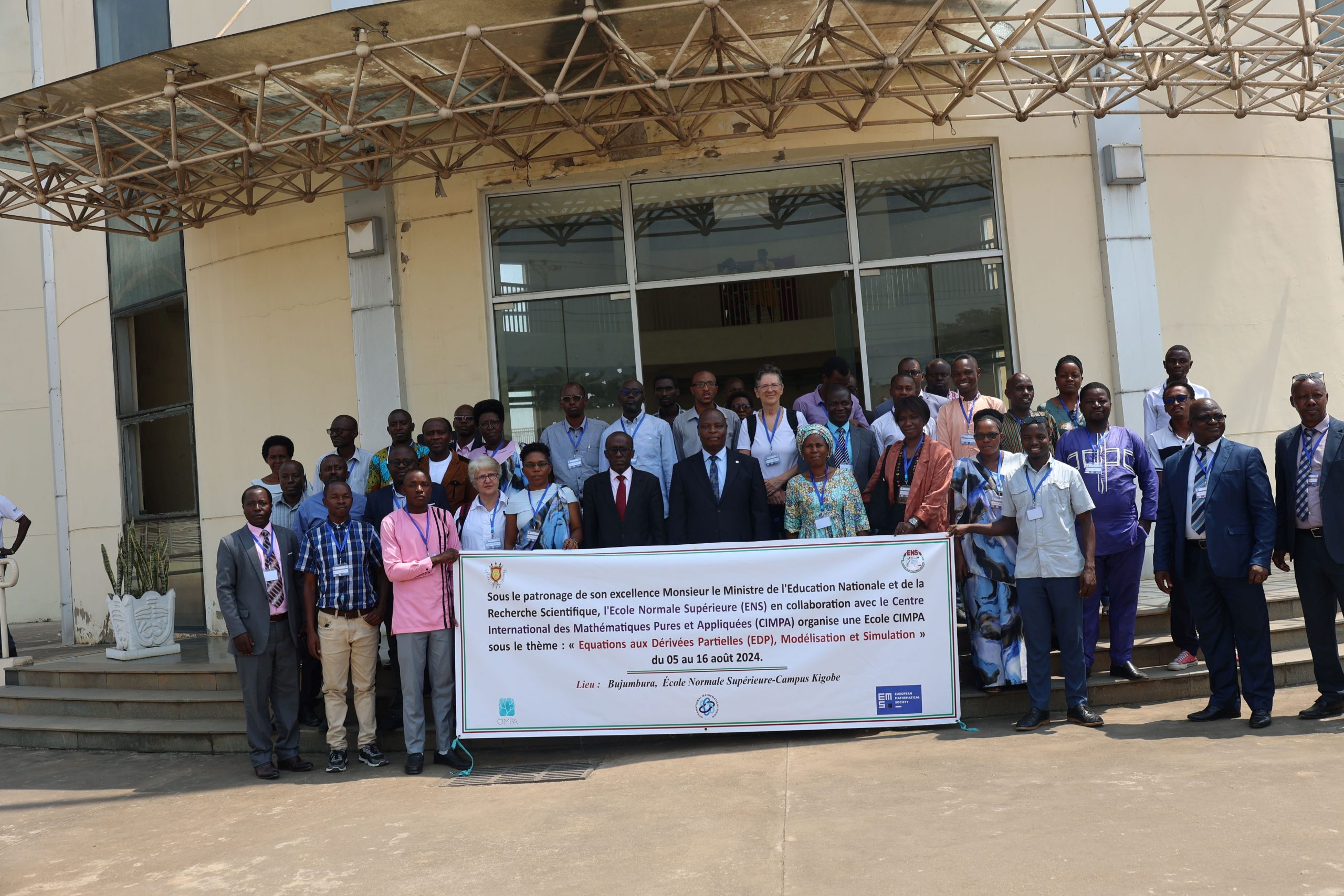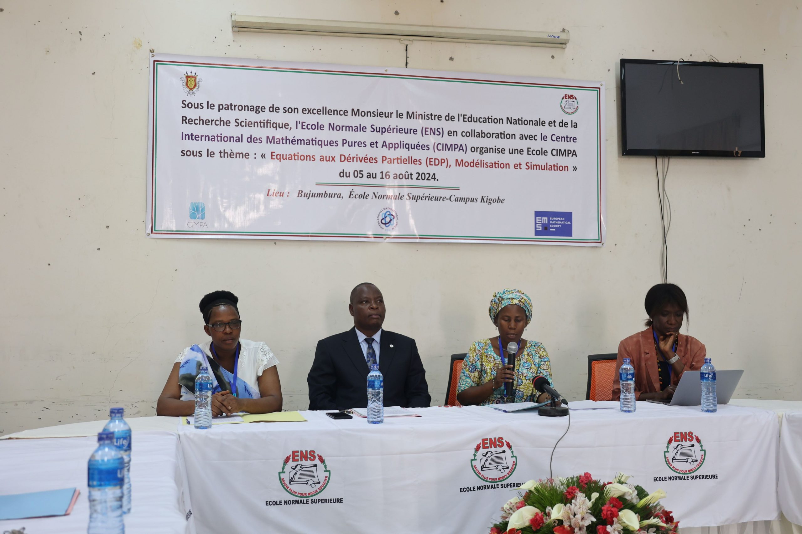 Sous le patronage du Secrétaire Permanent au sein du Ministère de l’Education Nationale et de la Recherche Scientifique qui a représenté le Ministre dignement empêché, l’École Normale Supérieure du Burundi (ENS) a procédé à l’ouverture d’une École CIMPA (Centre International de Mathématiques Pures et Appliquées) qui se tient à Bujumbura en dates du 5 au 16 août 2024 sous le thème « Équations aux Dérivées Partielles (EDP), Modélisation et Simulation ». Cette école à l’ENS a été organisée en collaboration avec le CIMPA.