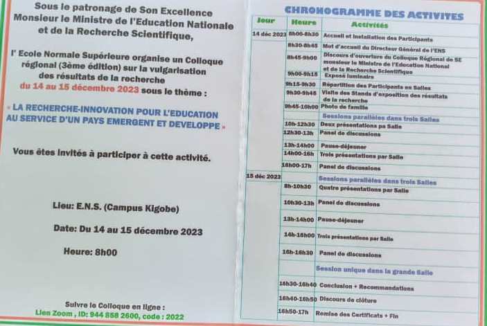 Invitation au Colloque Régional (3ème édition) à l’Ecole Normale Supérieure du 14 au 15 Décembre 2023