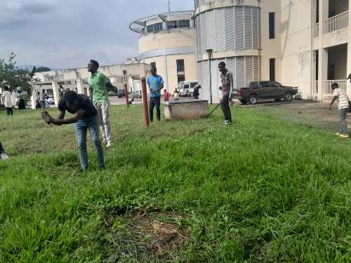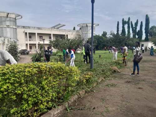 Il s’agissait de couper le gazon et de faire la propreté à l’entrée du Campus Kigobe, devant les blocs 4 et 5.